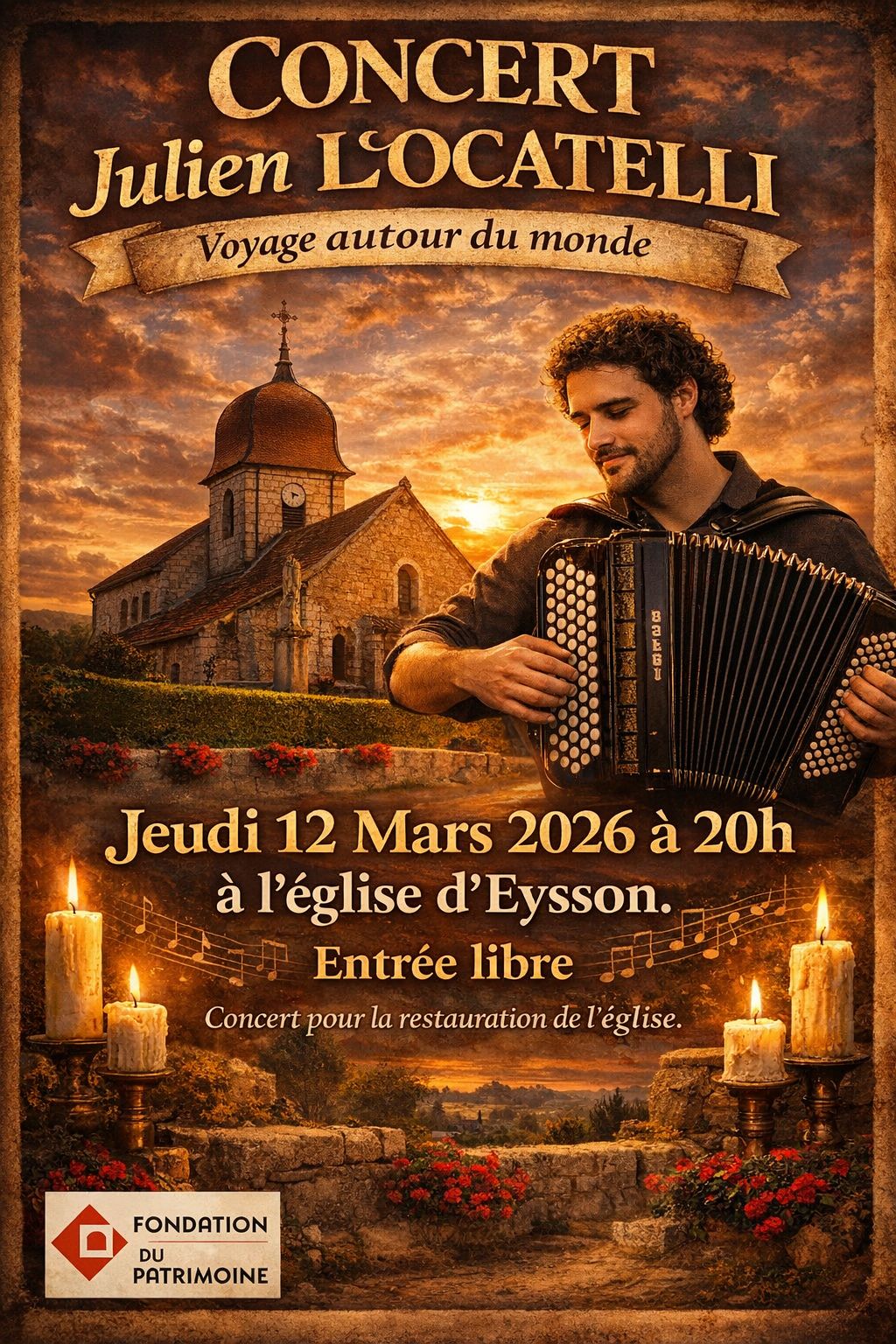 Concert avec Julien Locatelli "Voyage autour du monde" au profit de la restauration de l'église