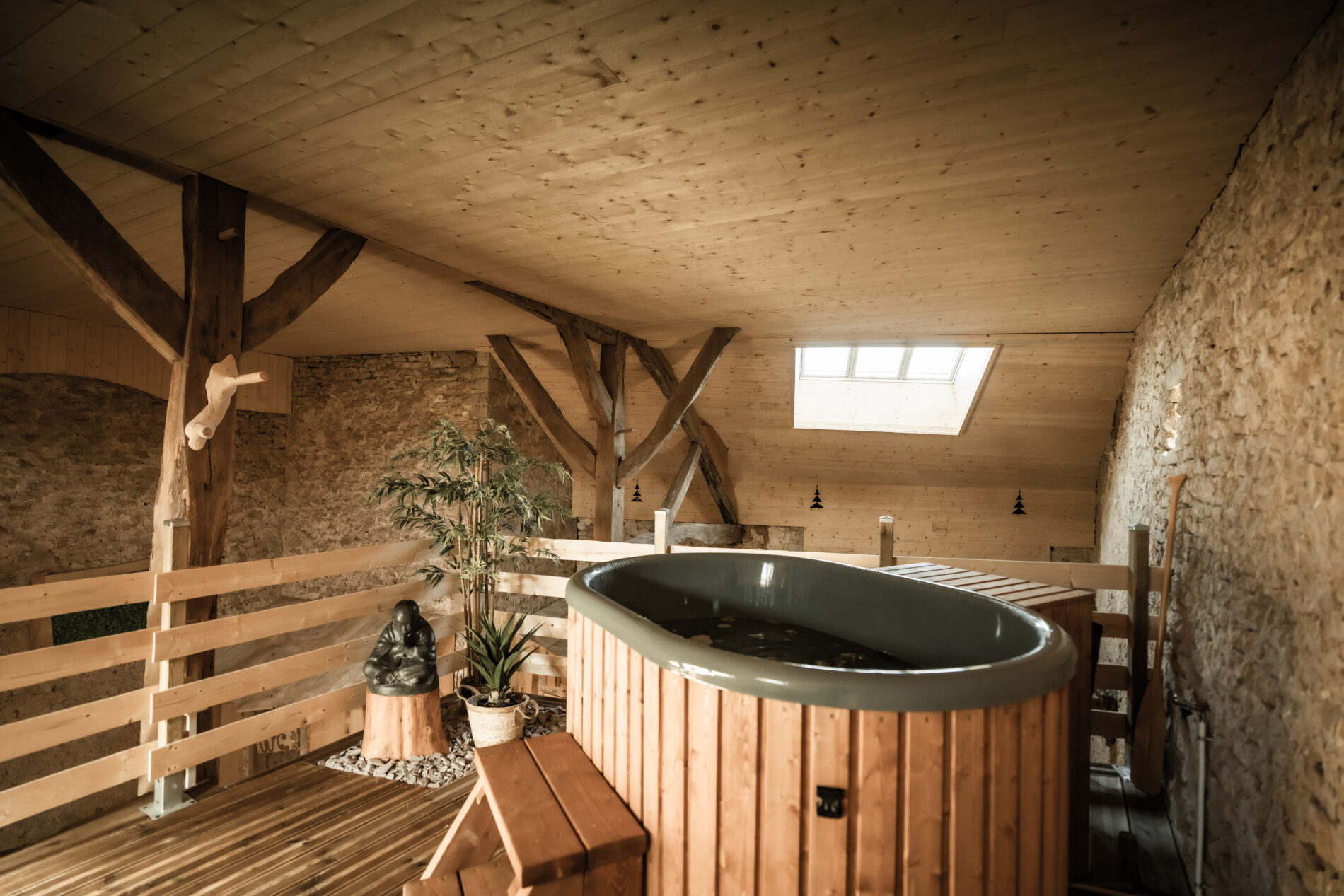 Venez profiter de nos aménagements dont un SPA façon bain nordique chauffé à 38 °.