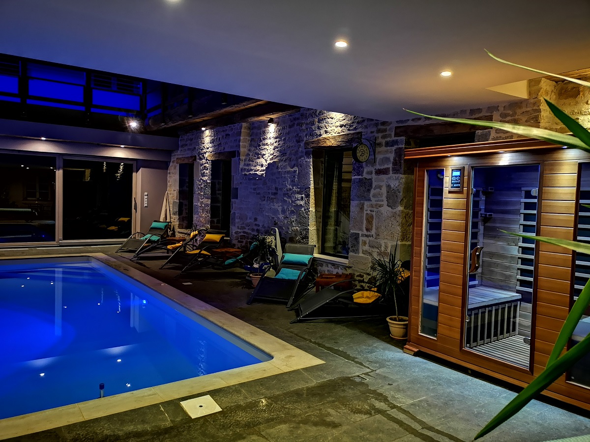 Le Relais des Deux Tours situé à la campagne propose trois chambres d'hôtes de charme luxueuses dans un décor agréable et authentique classées 5 épis aux Gites de France. Un endroit où l'on peut se relaxer au bord de la piscine intérieure à l'eau de pluie chauffée à 28°C toute l’année, avec un traitement par lampes UV (sans chlore ni sel), profiter du sauna infrarouge avec luminothérapie ou se détendre sur la terrasse extérieure tout en profitant de la nature et du terrain de pétanque dans le parc .