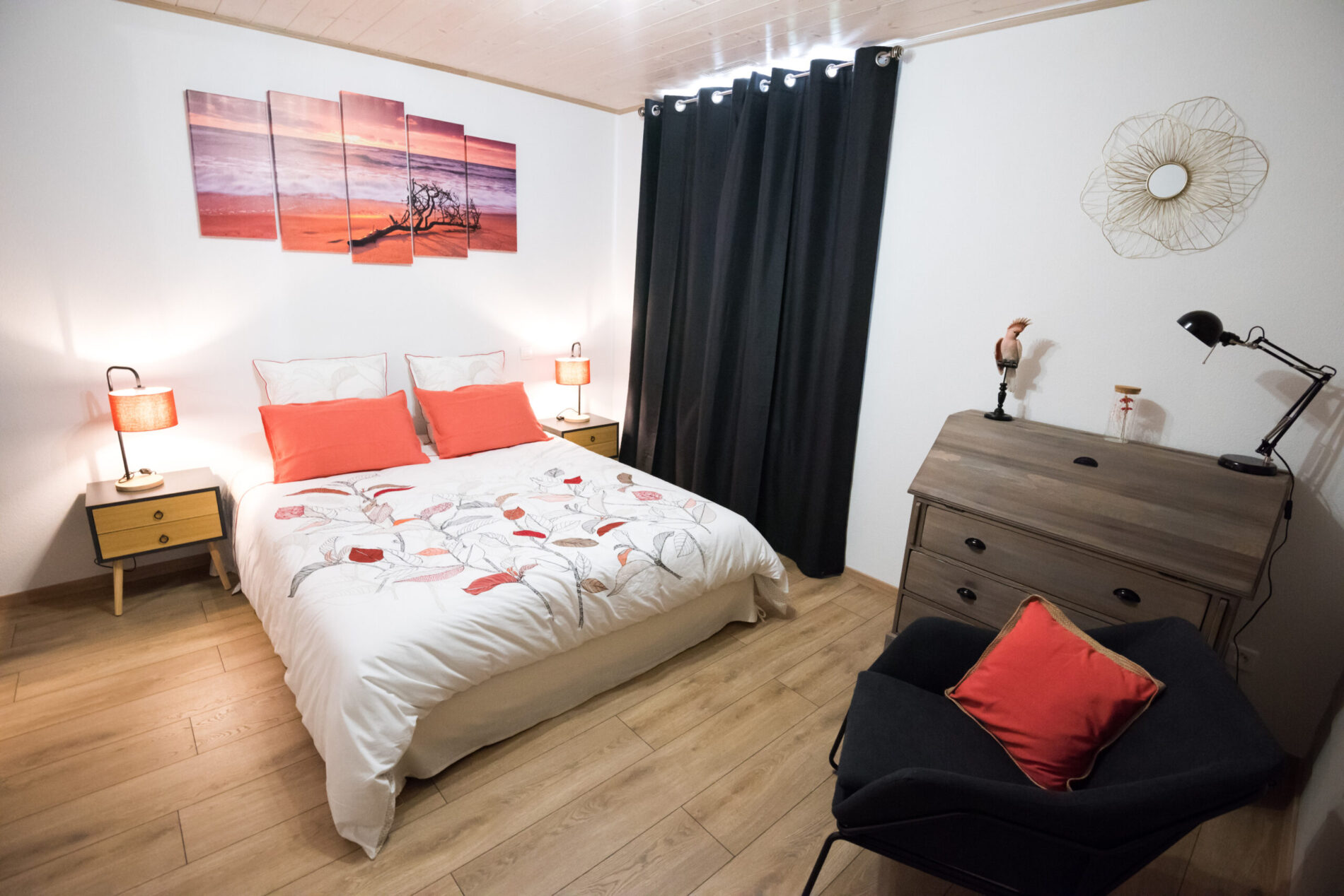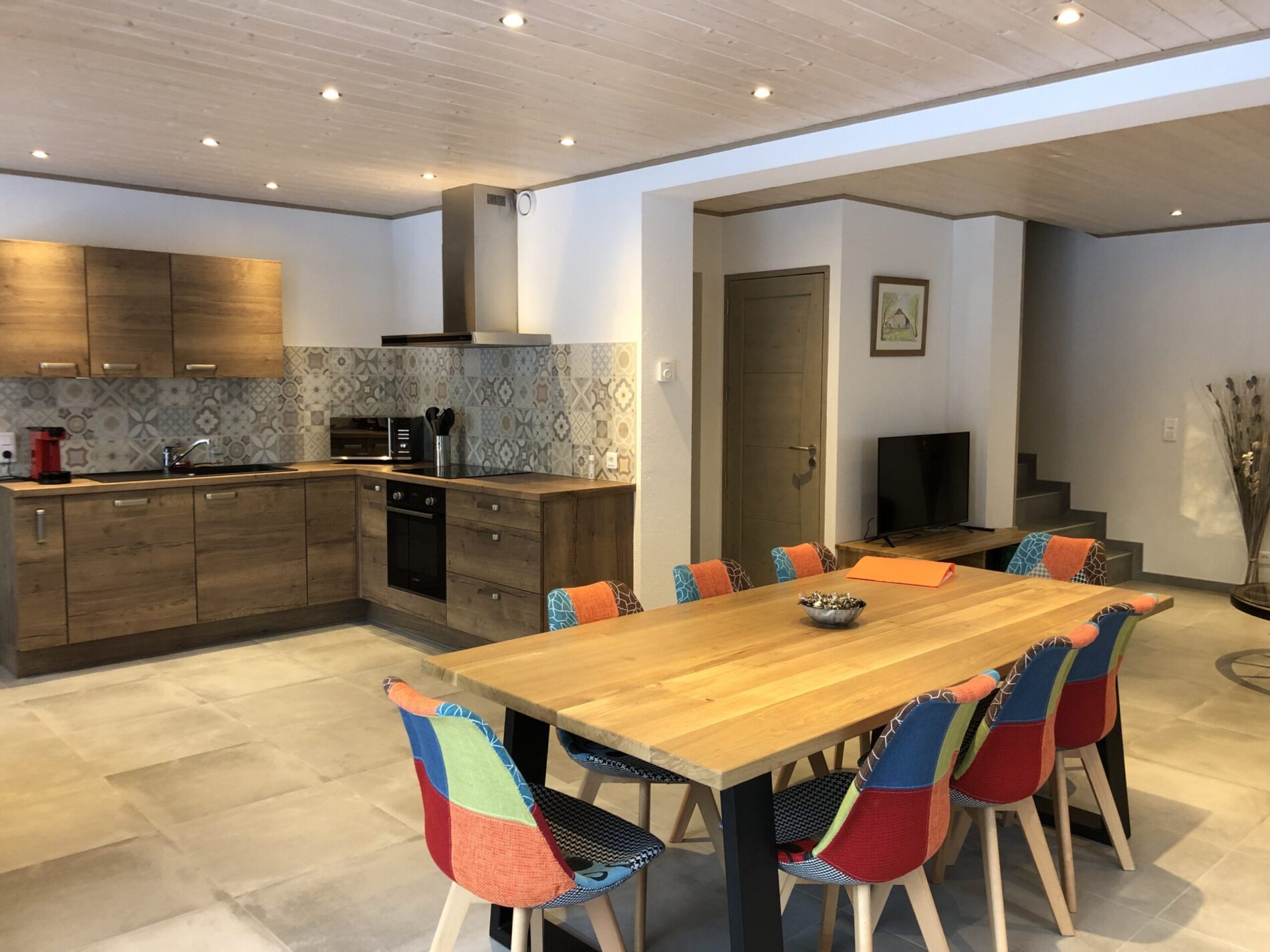Dans un décor moderne et vintage à la fois, mais surtout chaleureux, notre gîte Orchidée peut accueillir jusqu’à 8 convives. Très lumineux avec sa grande baie vitrée donnant sur la terrasse, il dispose d’une grande pièce à vivre avec cuisine ouverte sur salon-séjour.
