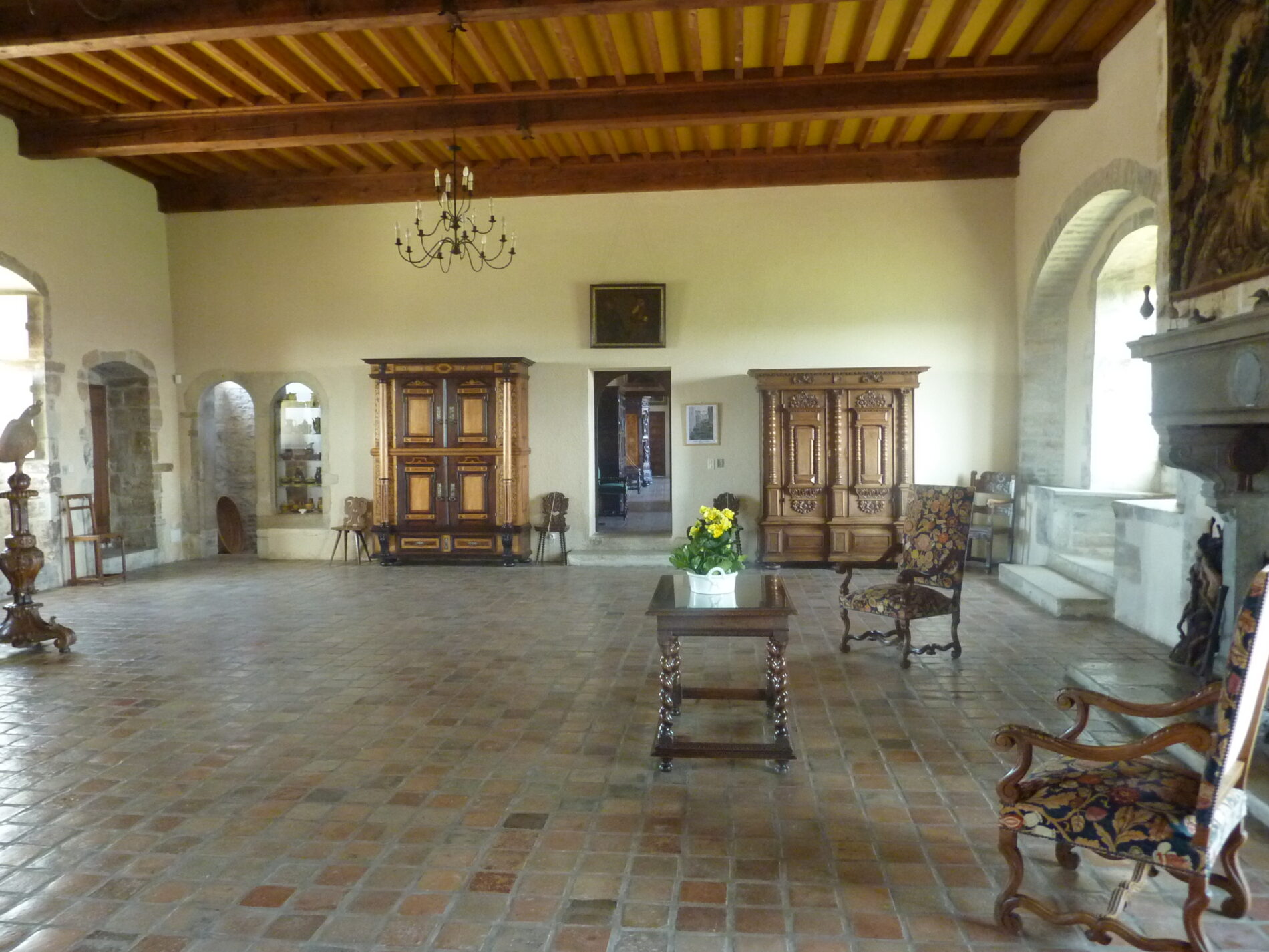 20 salles entièrement meublées sont ouvertes à la visite et présentent mobilier, tableaux, armes et objets datant du XVI° au XX° siècle.