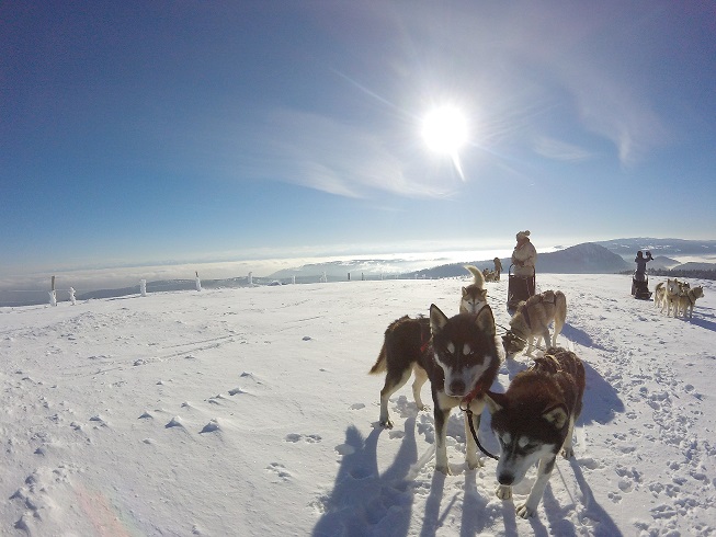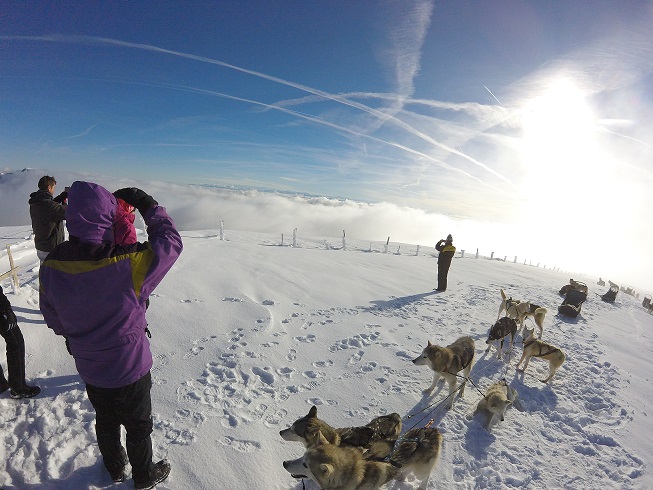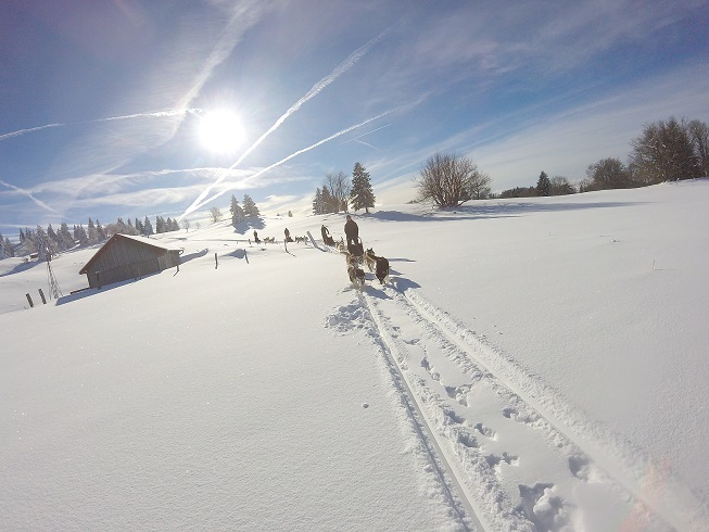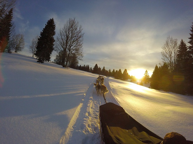 Balade découverte (assis dans le traîneau du musher): sur 1 heure ou à la demi-journée
