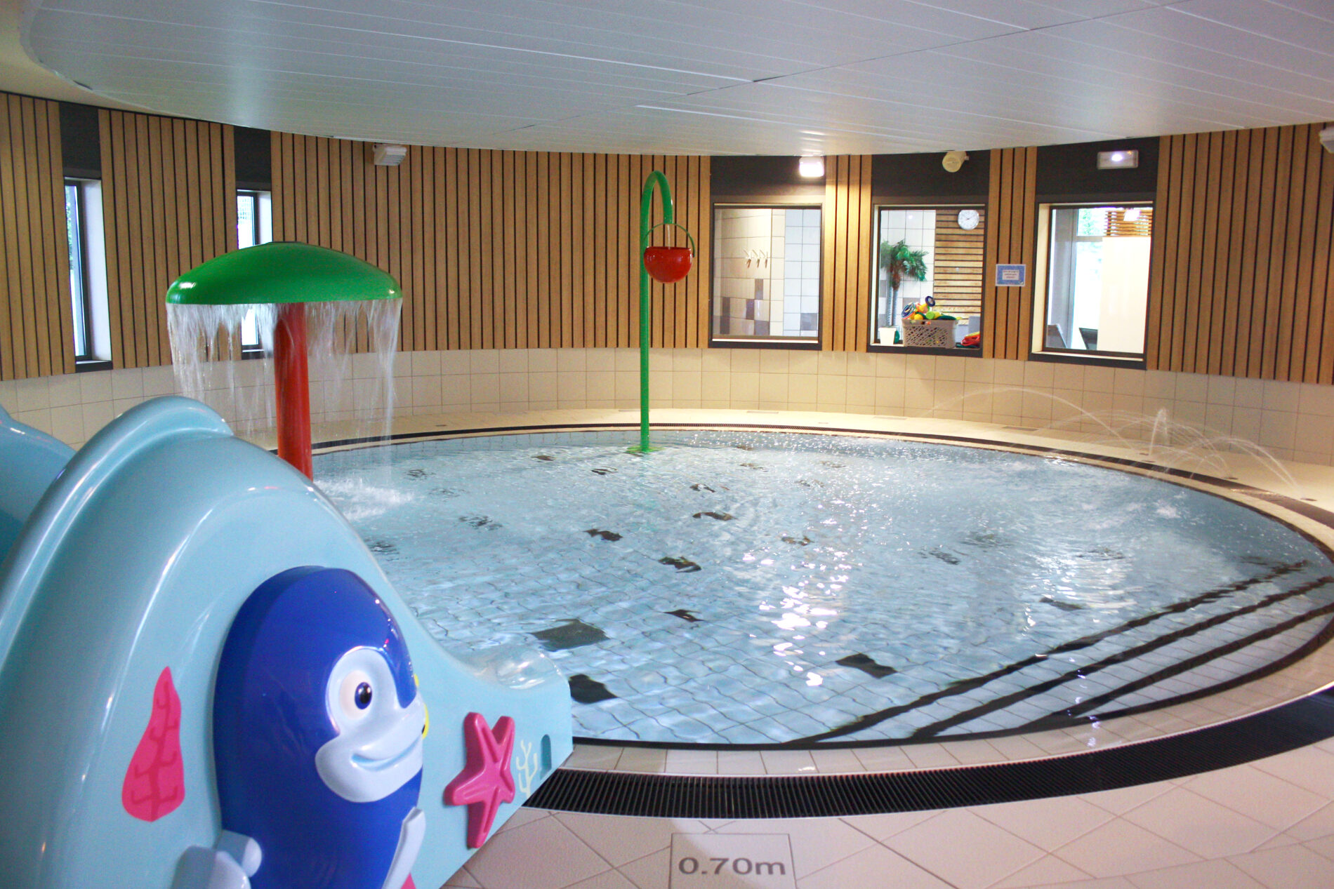 - Un bassin circulaire pour enfants, avec une eau plus chaude (31°C le week-end, 28,5°C en semaine), idéal pour les familles.